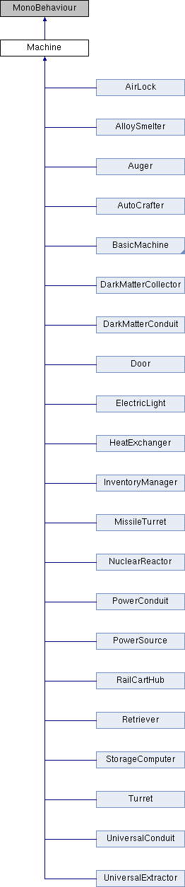 Reimplemented in UniversalExtractor, Retriever, AlloySmelter, BasicMachine, AutoCrafter, UniversalConduit, Door, Turret, DarkMatterCollector, DarkMatterConduit, PowerConduit, MissileTurret, PowerSource, Auger, HeatExchanger, Press, RailCartHub, GearCutter, Smelter, Extruder, StorageComputer, ModMachine, AirLock, ElectricLight, InventoryManager, and NuclearReactor.